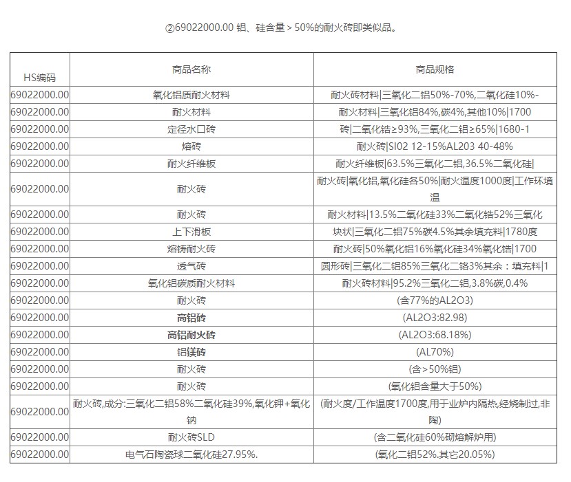 耐火磚出口HS編碼