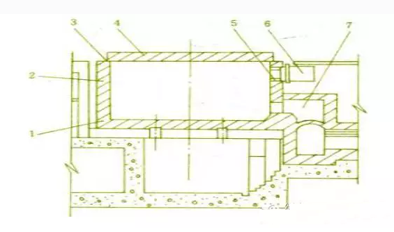 l一爐底;2一爐墻;3一爐口;4一爐蓋;5一燒嘴磚;6一燒嘴;7一煙道爐體用耐火材料 爐體由爐底、爐墻和爐蓋組成的,呈方形或長方形,亦稱為爐坑。