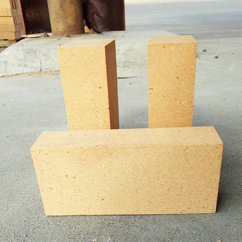 中國的粘土磚Al2O3含量一般多在40%以上,Fe2O3含量小于2.0~2.5%。配料中熟料為65~85%,結合粘土為35~15%。將粉碎的結合粘土和磨細的熟料混磨,再與顆粒熟料一起配制成半干泥料,高壓成型,在約1400℃下燒成,性能較好。粘土磚在高溫下呈弱酸性,抗堿性熔渣侵蝕的能力稍差,但隨Al2O3含量提高而增強。